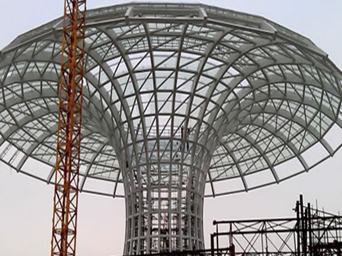 二、球形网架结构因其结构新颖,受力合理,自重轻、用钢量低等优点。如大型体育场馆球形岳阳螺栓球网架、公共场馆球形网架、电厂岳阳螺栓球网架、水泥工业球形网架、仓储物流球形网架、岳阳干煤棚工业球形网架、岳阳收费站岳阳加油站球形网架、展览中心、影剧院、商场、航站楼、候车厅、工厂岳阳车间、仓库、电视塔等球形螺栓球节点网架。国内球形网架结构主要分为:岳阳焊接球节点网架及螺栓球节点网架两种。螺栓球节点网架其构件工厂内加工量较大,现场安装便捷,适用于现场工期紧,岳阳施工条件、用电量受制约,网架形状复杂、岳阳杆件定位困难的异形结构。螺栓球节点球形网架系统基本由岳阳杆件、螺栓球、支撑支座等组成。按照节点形式可分为交叉岳阳桁架体系、四角锥体系、三角锥体系等。支撑方式多为固定支座支撑。对于大面积、大跨度及有特殊受力或伸缩要求的网架结构可采用橡胶支座、滑移支座、球铰支座等支撑形式,以满足结构自身的受力稳定、均衡,便于内力释放等设计要求。